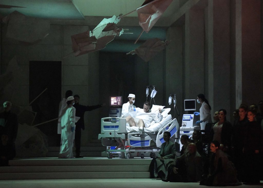 En el segundo acto, ese mismo museo aparece devastado por una explosión: una imagen fuerte, capaz de hacer visible la fragilidad del tejido cívico, herido incluso por un solo gesto. La idea funciona, es elocuente, mientras que resulta bastante menos convincente la aparición de Tito en una cama de hospital tras el atentado: un recurso dramático que rompe la estética general y genera cierta desconexión visual. Algo más sólido es el trabajo sobre los intérpretes: Curran cuida las relaciones, da aire a los diálogos y deja fluir el drama sin que la rigidez que a menudo pesa sobre La clemenza se haga patente en ningún momento. Lo que faltó fue, no obstante, un trabajo más sutil sobre la gestualidad en relación con el dictado mozartiano —siempre muy exacto bajo este aspecto— perdiendo así la posibilidad de un acercamiento más profundo al dictado mozartiano relacionado a la dramaturgia musical.