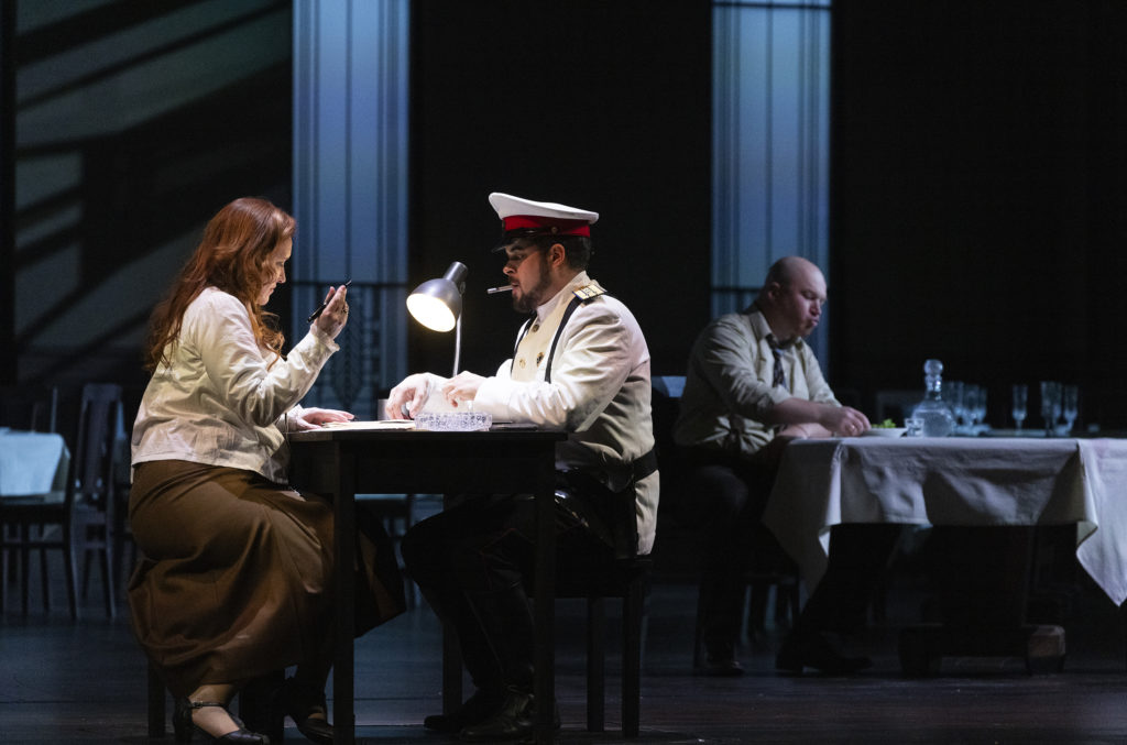 En el reparto vocal destacó con nitidez Sara Jakubiak, que confirmó ser hoy una de las intérpretes de referencia del papel de Katerina Izmáilova. La soprano, ya protagonista de la ópera en el Liceu de Barcelona la temporada pasada, combina una voz de proyección segura y timbre incisivo con una presencia escénica convincente, siempre centrada en la dimensión trágica del personaje. Najmiddin Mavlyanov compuso un Serguéi de notable eficacia teatral: voz robusta, fraseo directo, un físico creíble que subraya el magnetismo brutal del personaje sin convertirlo en caricatura. Alexander Roslavets, por su parte, ofreció un Boris de gran interés dramático: autoritario y opresivo, pero sin los acentos fanfarrones o libidinosos.